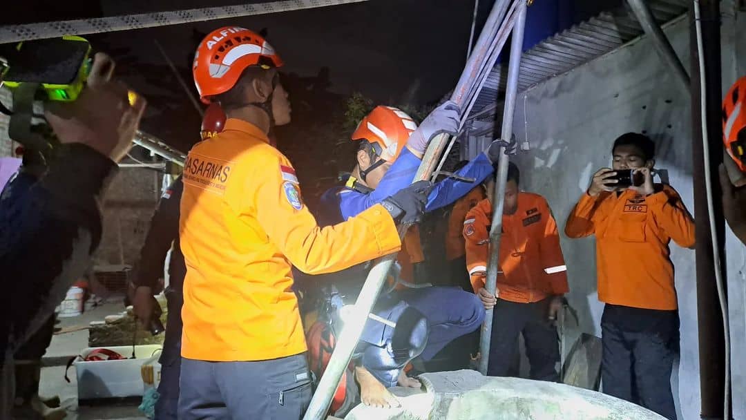 Petugas mengevakuasi korban dari dalam sumur. Foto: basarnas yogyakarta
