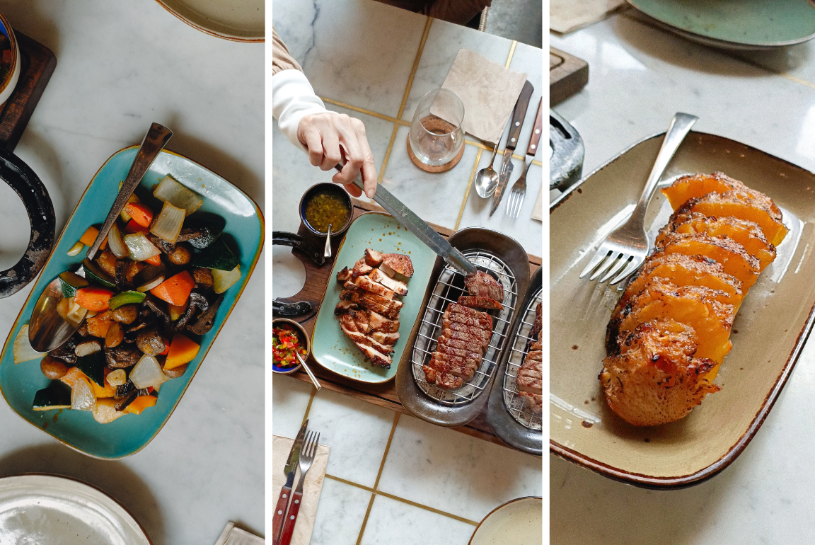 Di tengah-tengah sesi santap, Chef Mauro dan Chef Victor datang bergantian ke meja kami menjelaskan hidangan-hidangan hasil kreasi bersama tim. Beberapa pelayan kemudian menghidangkan Picanha, Striploin, dan Roasted Chicken di atas bakaran beralaskan nampan kayu tapal kuda yang epik. Dedagingan ini disajikan bersama sayuran bakar dan tentunya yang tak boleh terlewat, nanas bakar yang segar dan manis, menyegarkan seisi mulut dan menutup sesi santap kala itu.