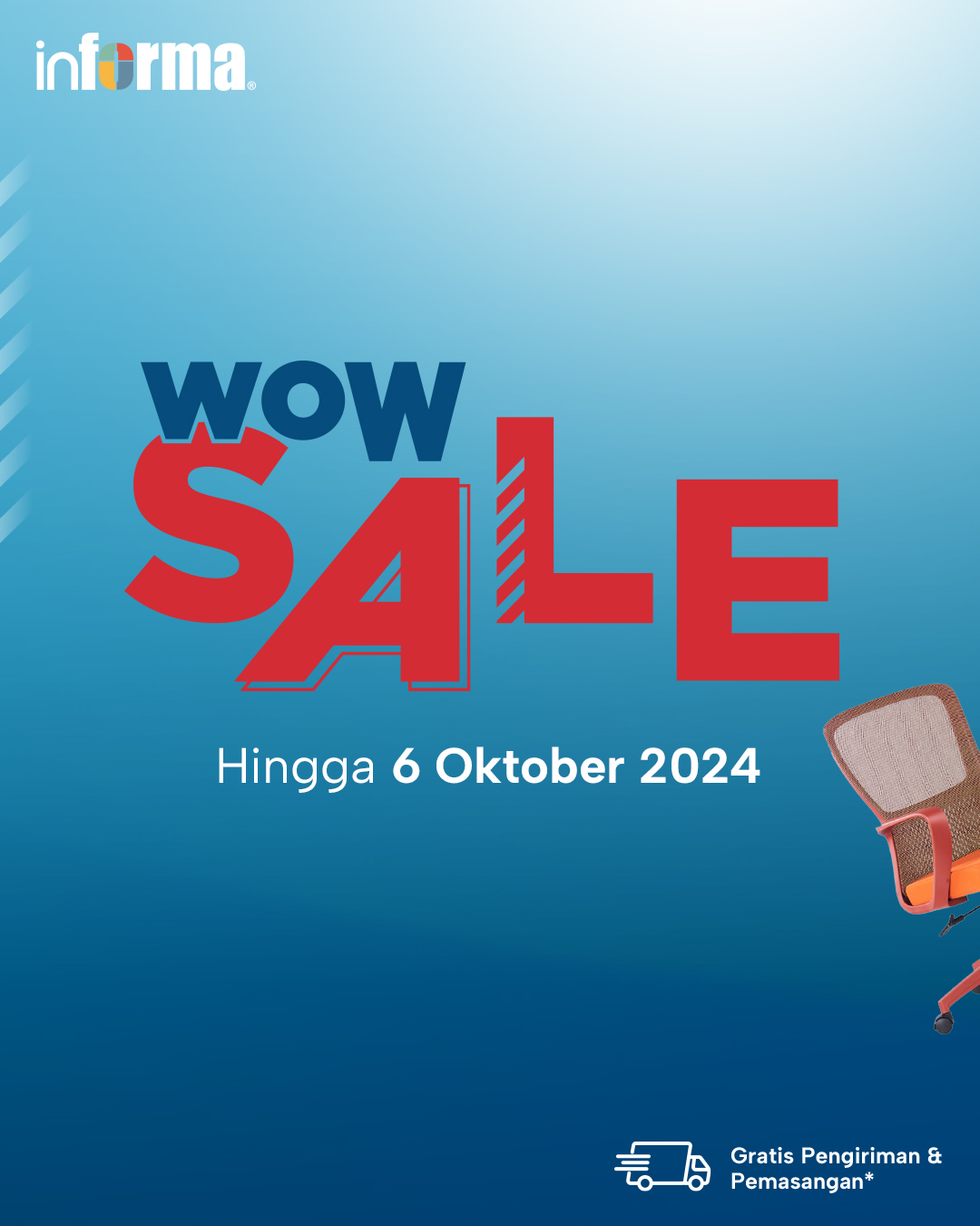 Dikatakan jika Furnitur dan Aksesoris akan hemat hingga 50%. “Nggak usah diadu, Pasti Termurah!, Aksesoris serba Rp 100 Ribu-an dan Rp 200 Ribu-an, Produk Baru Spesial di WOW Sale, Beli 1 Gratis 1 dan Custom Furnitur Diskon hingga Rp 30 Juta. “Buat yang belanja di INFORMA Mobile App, #pastiketemu Cashback hingga Rp 200 Ribu untuk check-out pertamamu, pakai kode voucher: INFORMAWOW.Segera ke INFORMA terdekat dan serbu promonya. Berlaku hingga 6 Oktober 2024,” jelasnya.