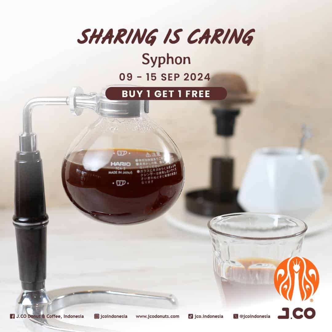 “Kickstart your Monday with a treat!. Enjoy our Sharing is Caring promo — Buy 1 Get 1 Free on Syphon-brewed coffee, starting from just 40K! ,” demikian penawaran promo tersebut. Disebutkan jika promo berlangsung mulai 9 sampai 15 September 2024. “Pick your favorite beans from our Signature & Reserve collection, and bring a friend along for double the joy. Let’s turn your Monday into something special!,” tambahnya.