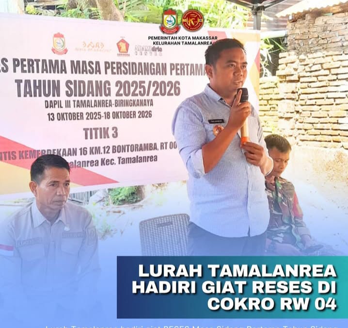 Gempar News-16 Oktober 2025 Lurah Tamalanrea, Sulaiman, menghadiri kegiatan Reses Masa Sidang Pertama 2025/2026 yang digelar oleh Idris, S.IP dari Fraksi Gerindra di Kampung Baru Cokro RW 04.