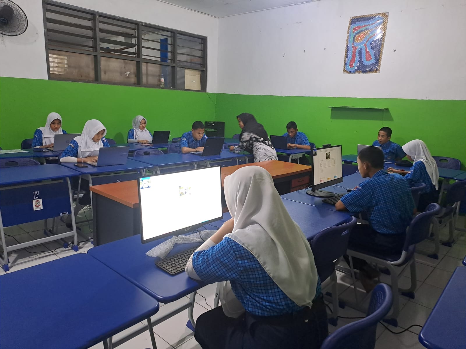 Kegiatan simulasi berlangsung tertib dan penuh konsentrasi, ditandai dengan keterlibatan aktif peserta didik dalam mengikuti seluruh tahapan ujian percobaan sebagai persiapan menghadapi TKA sesungguhnya.