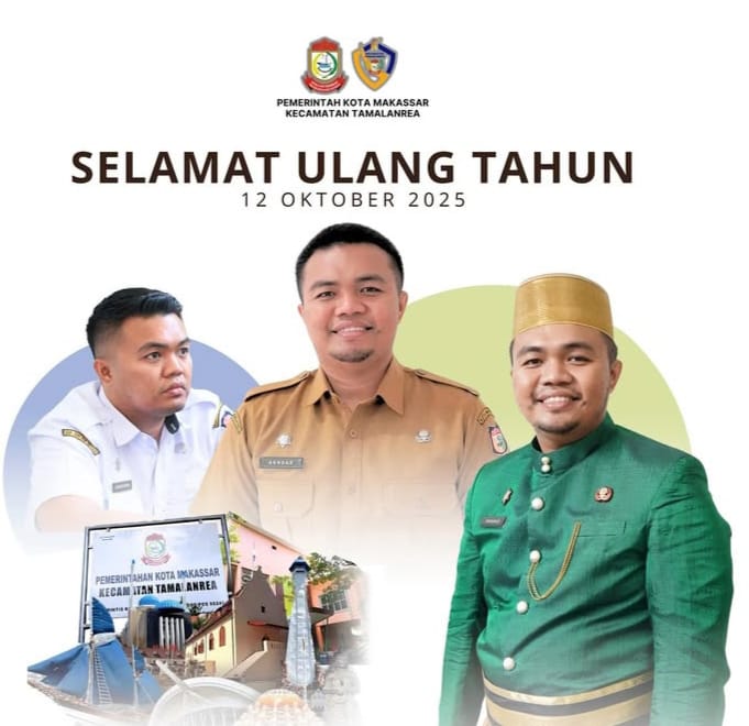 Gempar News-Kecamatan Tamalanrea mengucapkan selamat ulang tahun kepada Sekretaris Camat Tamalanrea, Bapak Andi Akhdar Darwin, yang berulang tahun pada 12 Oktober 2025.